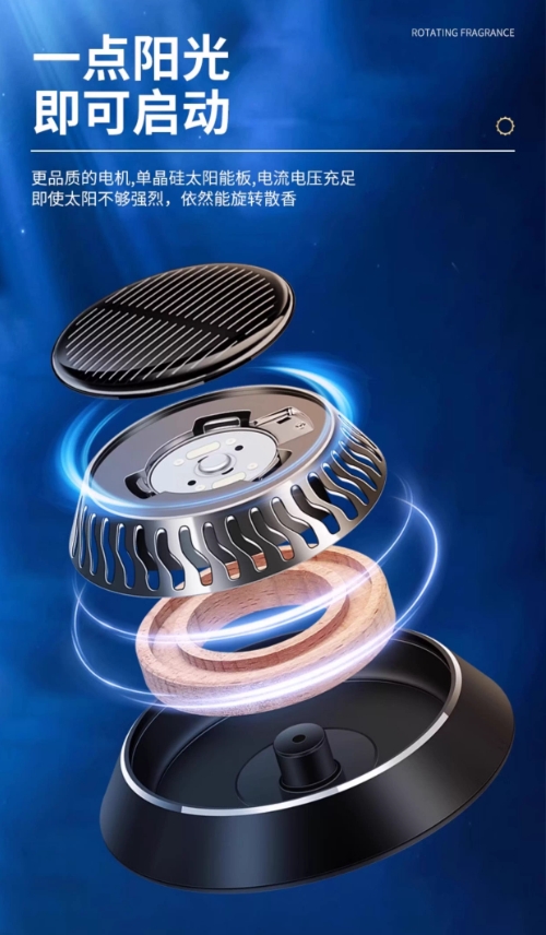 车载香薰香水汽车香氛用品2025新款高级太阳能旋转扩香器车用摆件