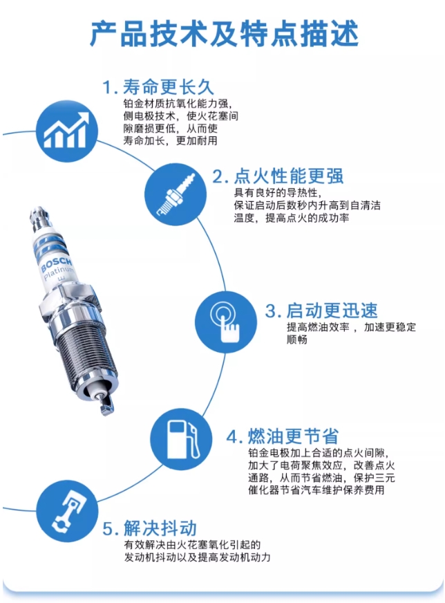 博世品牌,买了他家的火花塞,老车,多年也没换火花塞了。安装后,感觉打火很快,汽车非常有劲。
