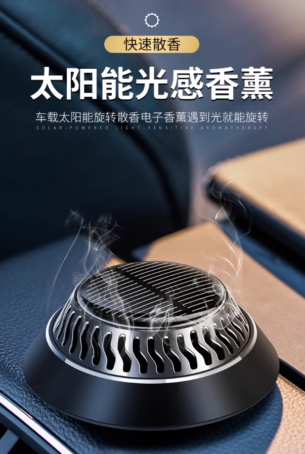 车载香薰香水汽车香氛用品2025新款高级太阳能旋转扩香器车用摆件