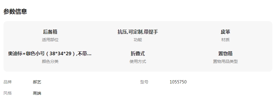 适配奥迪汽车储物箱A6L/Q5L/A4L/Q3/A3L/A8/Q7车载后备箱收纳箱