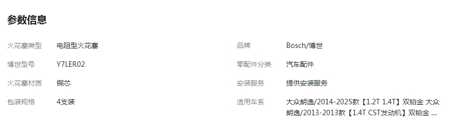 博世品牌,买了他家的火花塞,老车,多年也没换火花塞了。安装后,感觉打火很快,汽车非常有劲。